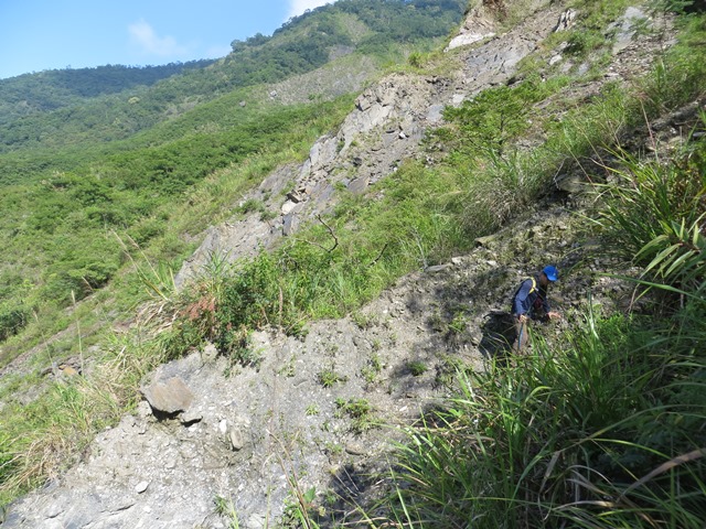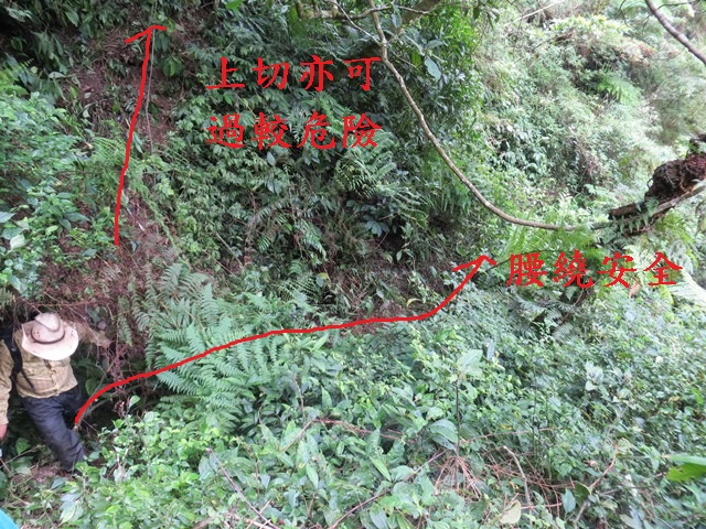舊資料碎石坡,結果已經長滿植被,直行小下切右腰繞安全路徑。
