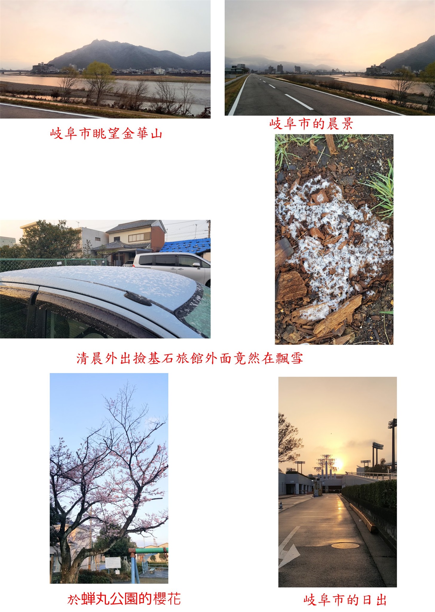 第四天(3/24)清晨由岐阜都HoTeRu飯店出門撿2顆基石,旅館外面竟然在飄雪,由旅館走巷道往東南走