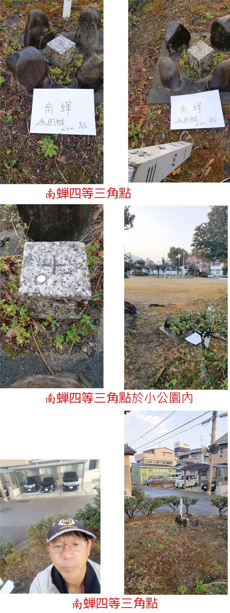 5、南蝉:位於日本岐阜県岐阜市,標高16公尺,四等三角點,冠字選点番号為K重3;座標N35 26 46.2 E136 45 45.6。