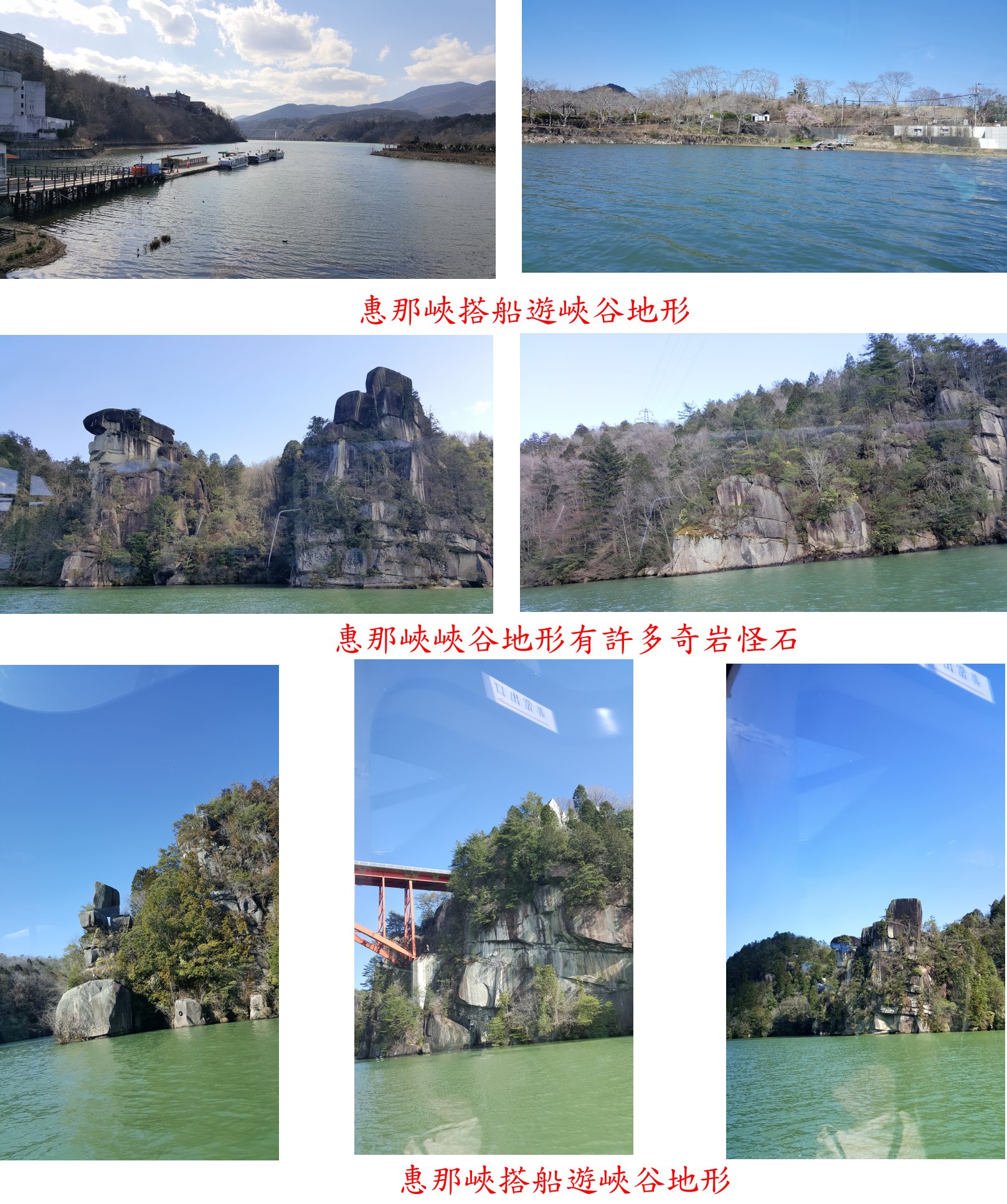 ◎由虎山溪永保寺搭車至馬籠宿,午餐後走一小段中山道的石板路,因要趕去惠那峽搭船,很棒的古道卻沒時間多走一段有點小失望;再來搭車至惠那峽搭船遊峽谷地形,有許多奇岩怪石,或許是季節不對感覺景色普通,下船後繞惠那峽公園一圈,進到惠那峽國際HoTeRu時間還早,利用空檔再去找顆基石。