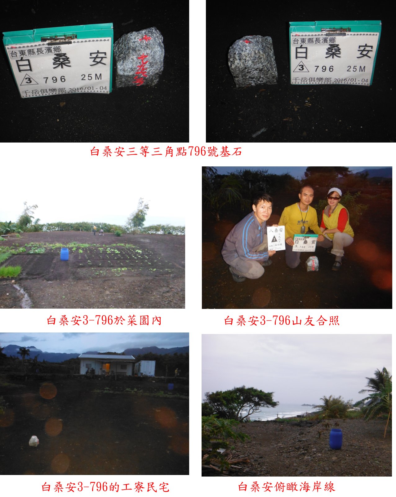白桑安3-796號基石於左下方的空地上,基石破損嚴重,此點有位移過;工寮左下方目前為菜園,基石距離靠海的崖邊約