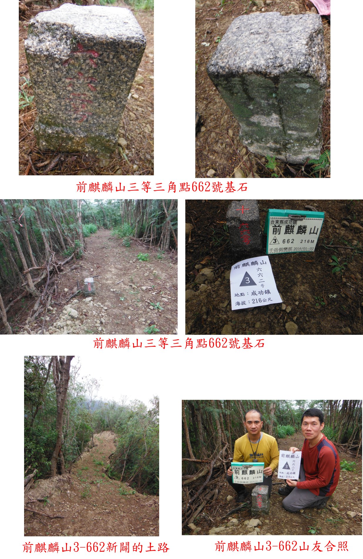 1、前麒麟山:位於台東縣成功鎮,標高216公尺,三等三角點662號基石。