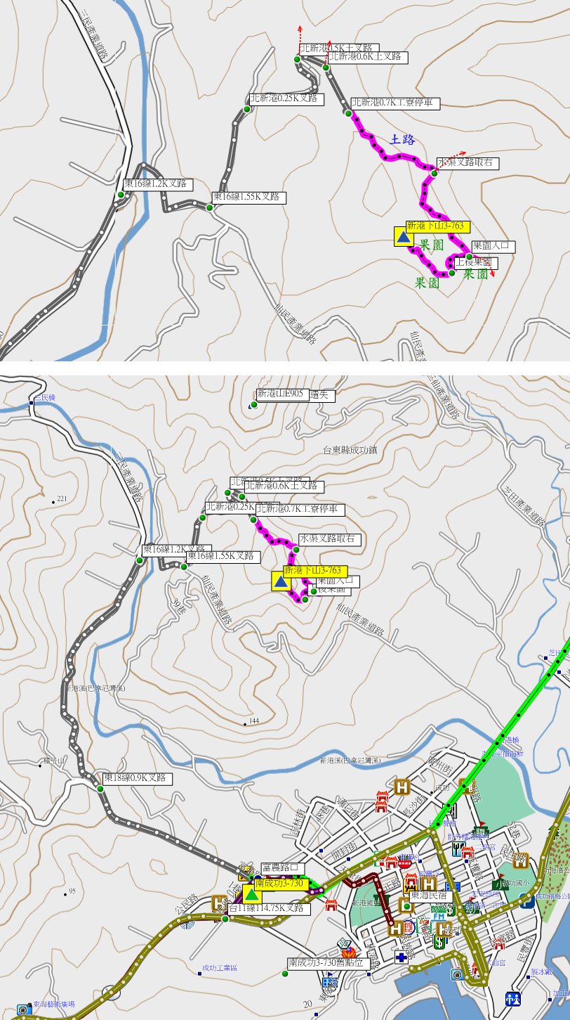 2、北新港山:又稱新港下山,位於台東縣成功鎮,標高190公尺,三等三角點763號基石。