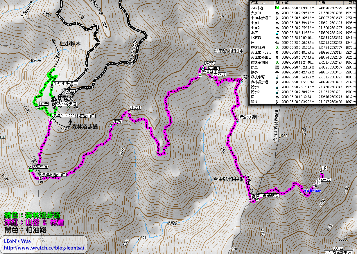*請先走到大雪山賓館,再從下面小木屋區一旁的步道下去,即可看到「非遊樂區勿入」,往波津加&220林道的路就是從這邊下去摟!