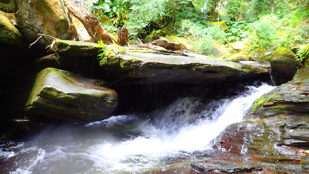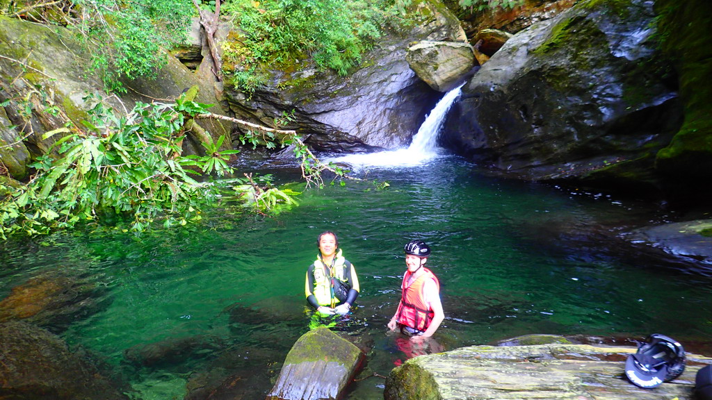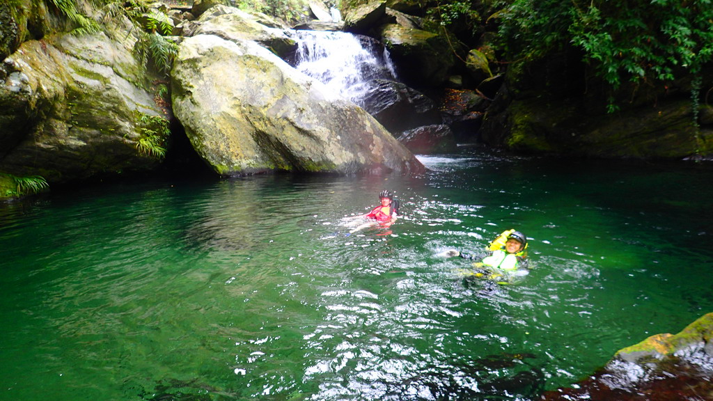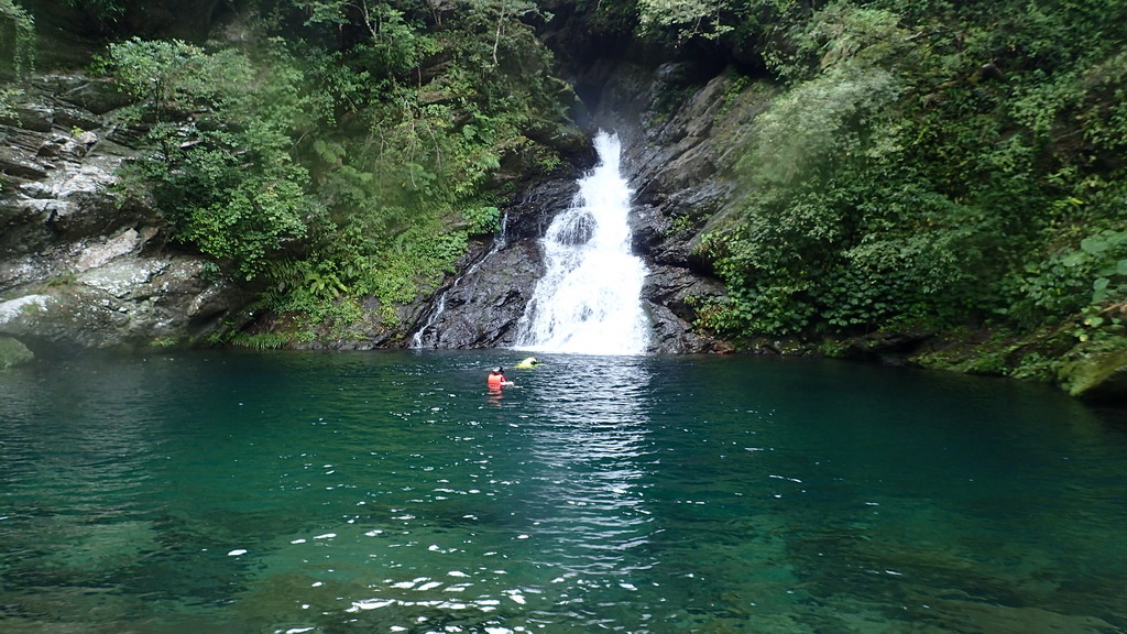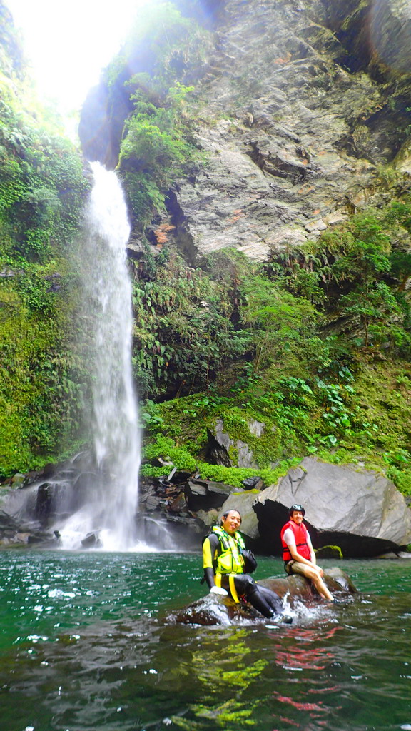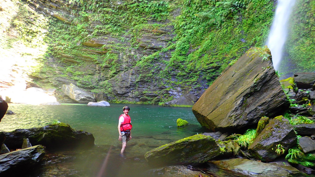 神秘瀑布下 , 一整個游泳池 ( 注意落石)