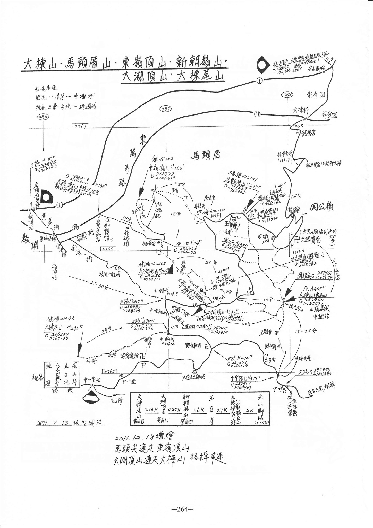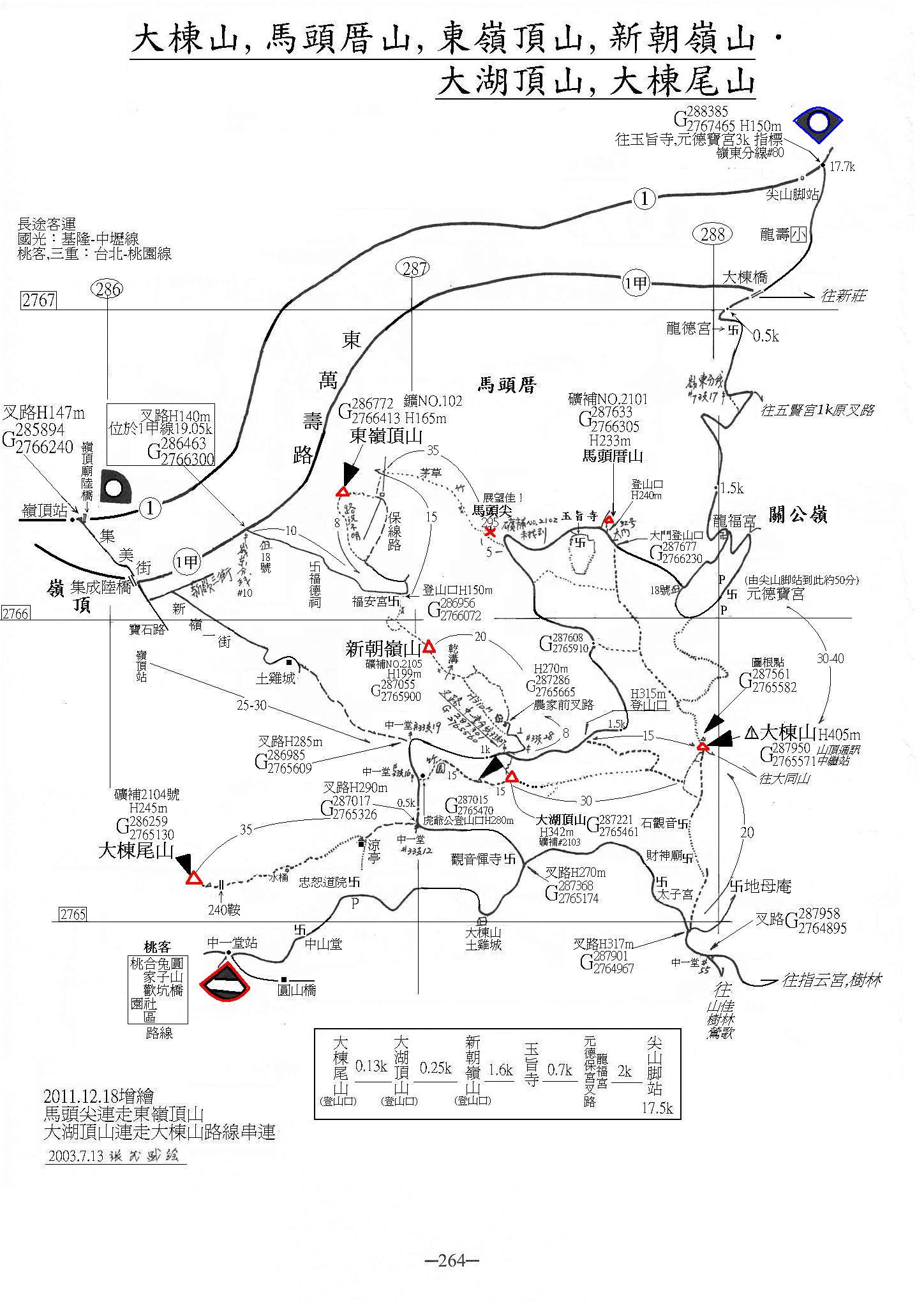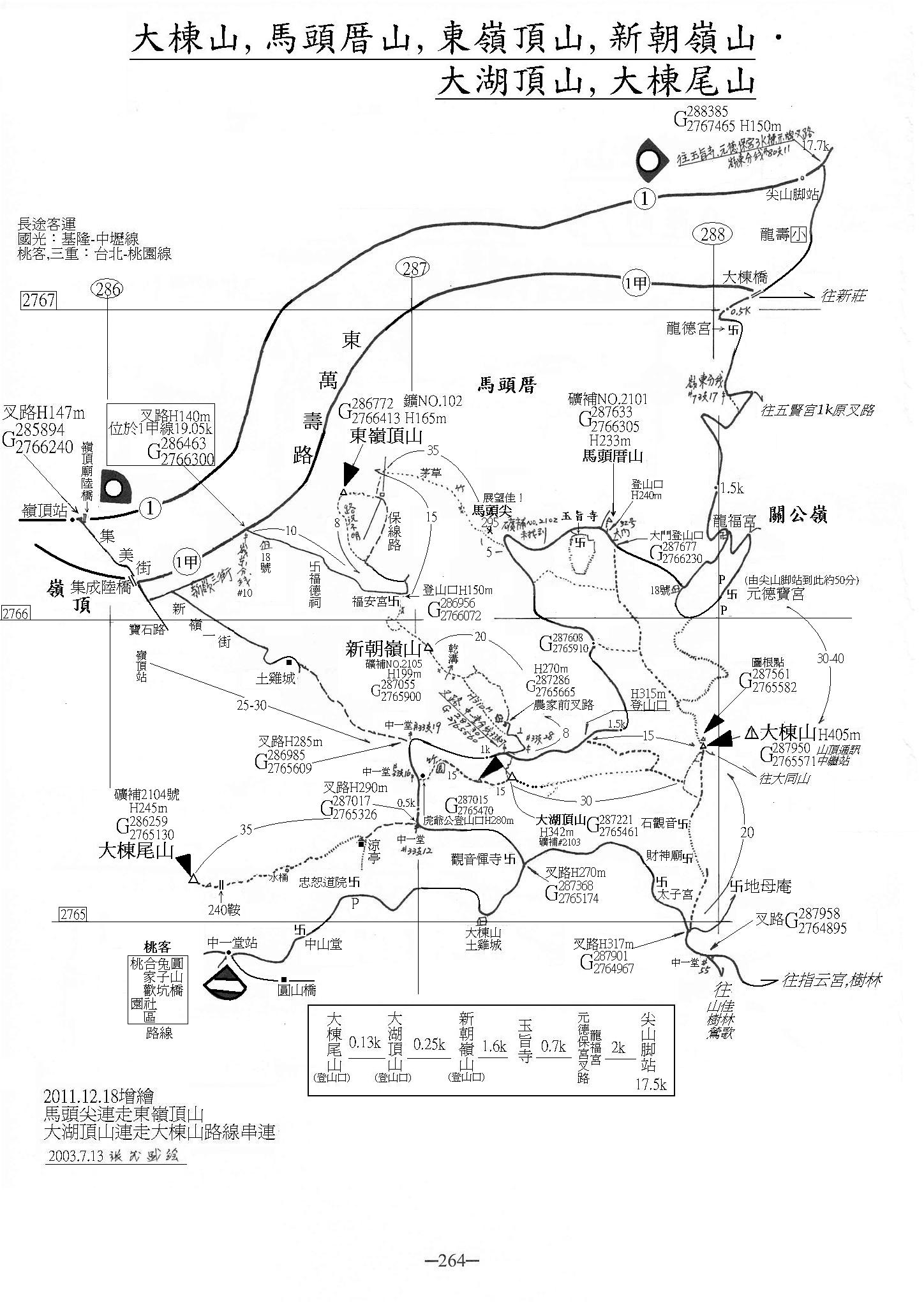 (十264) 大棟山、馬頭厝山、東嶺頂山、新朝嶺山、大湖頂山、大棟尾山 增繪 馬頭尖連走東嶺頂山、大湖頂山連走大棟山路線串連2003年