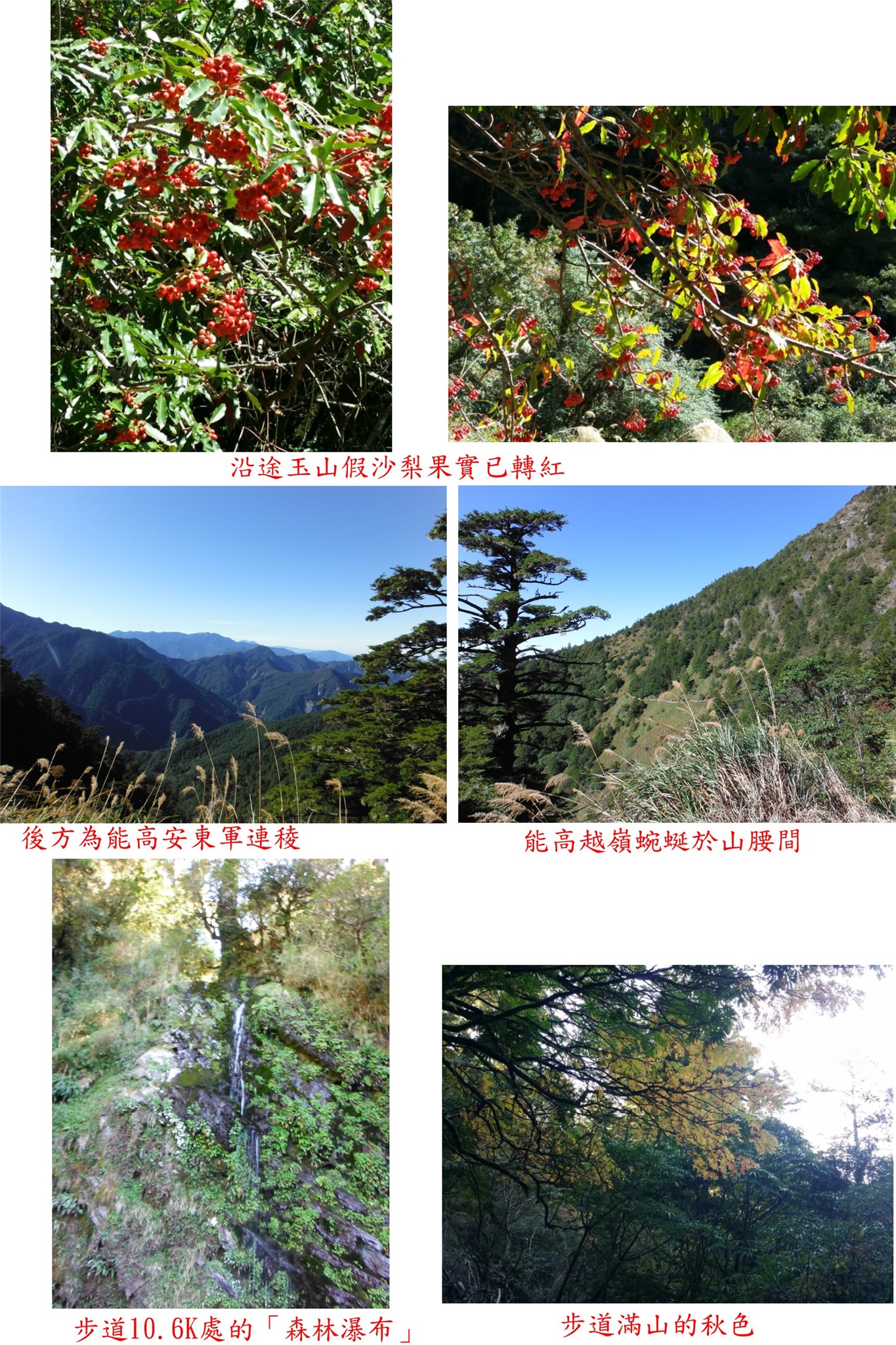 10:05步道10K處,沿途有數輛越野機車載補給品至天池山莊;沿途玉山假沙梨果實已轉紅。