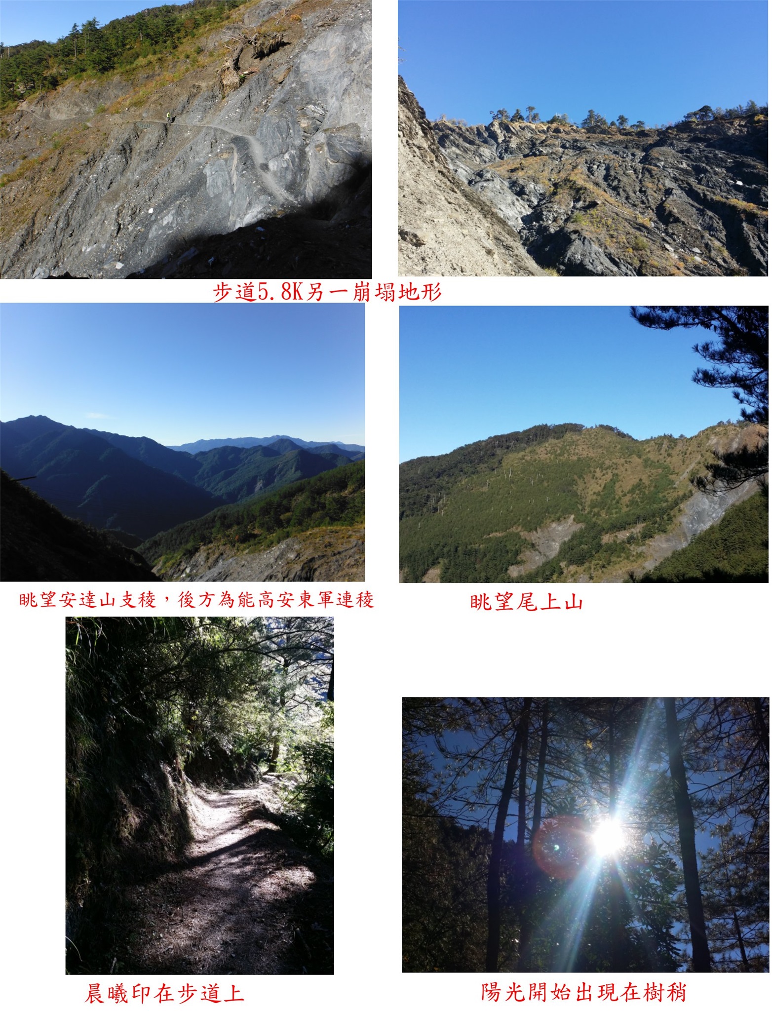 08:31另一崩塌地形,於步道5.8K處,走270公尺過崩塌地;沿途許多樹葉多轉紅了。