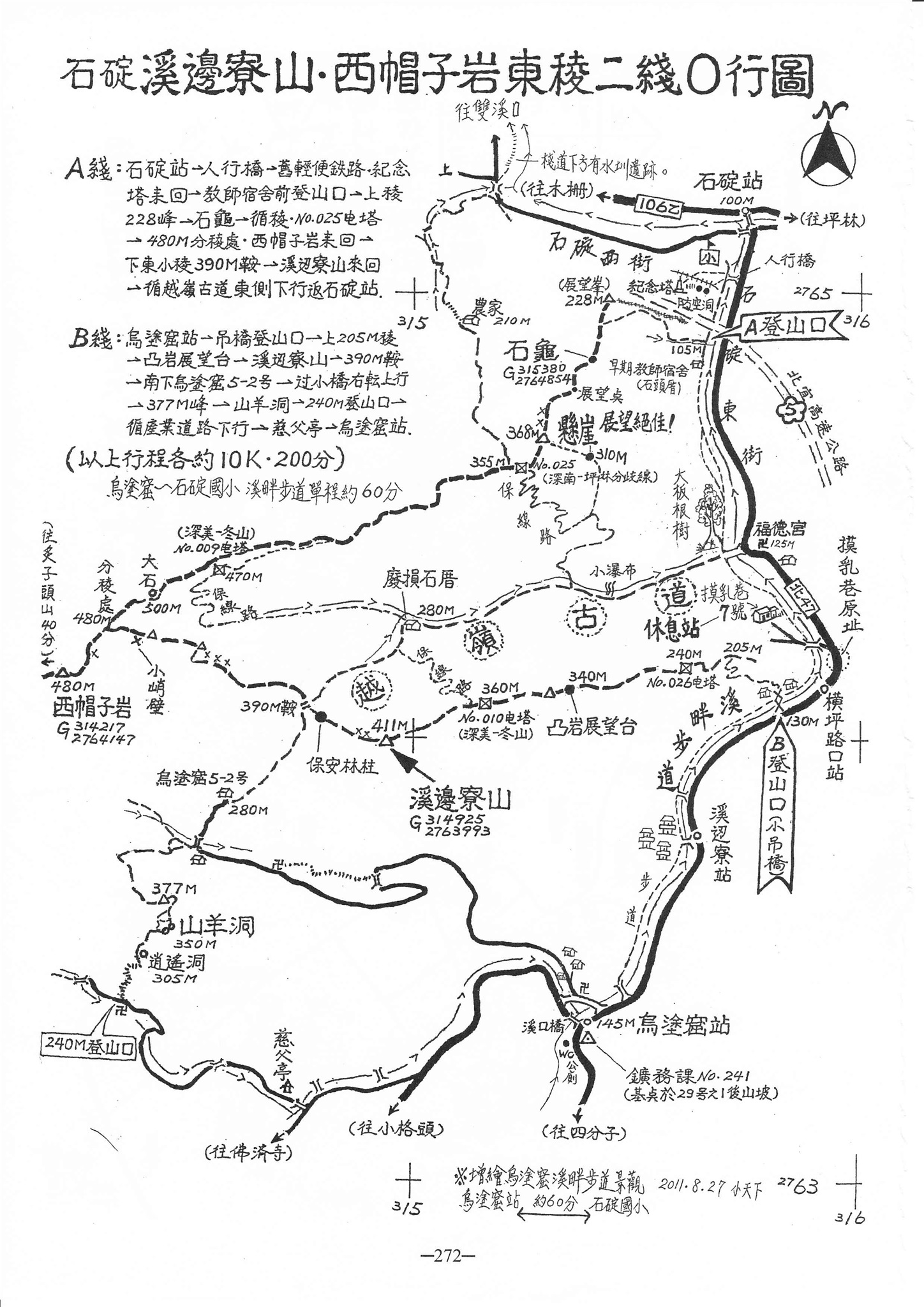 (十272) 石碇 溪邊寮山.西帽子岩東稜二線○行圖2011年