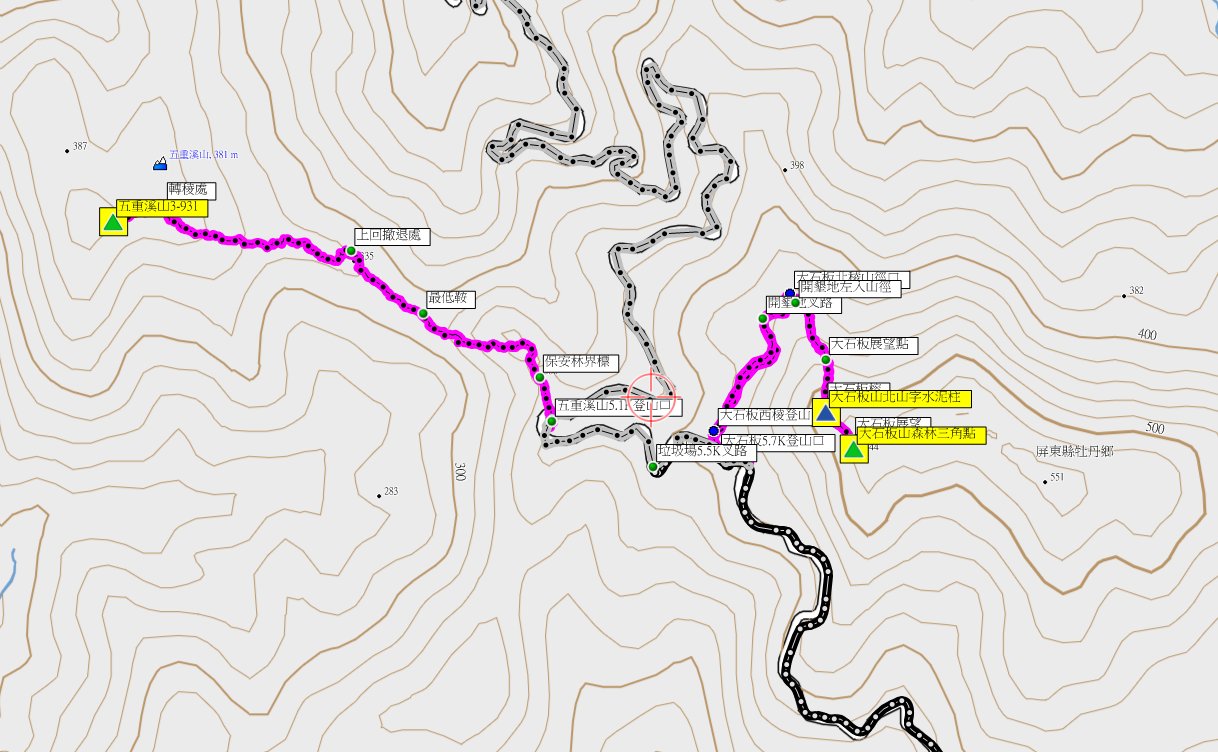 2、大石板山:位於屏東牡丹鄉,高544公尺,次張(02)森林三角點;座標2282322444825。