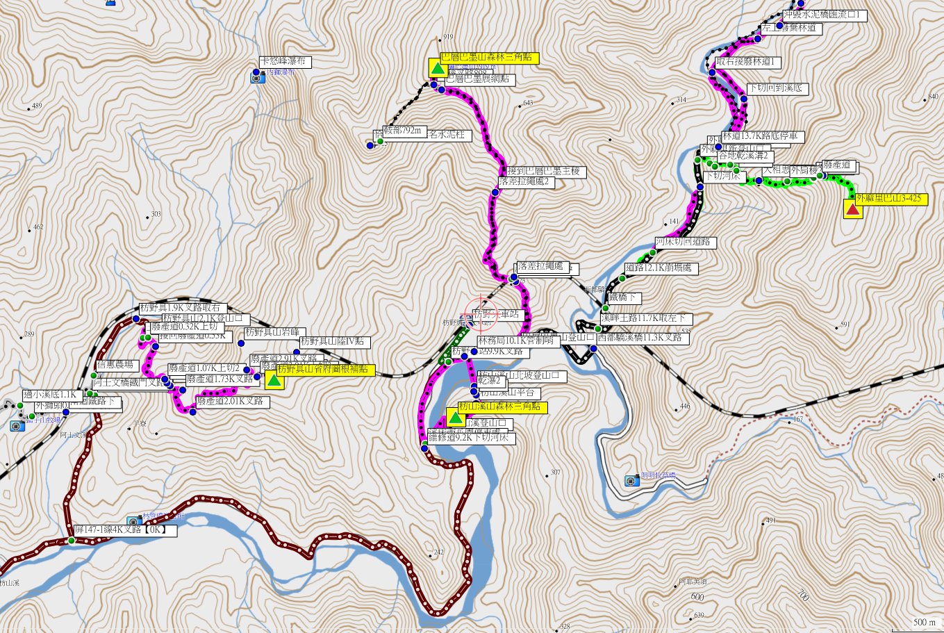 3、巴層巴墨山:位於屏東縣獅子鄉,標高937公尺,補近(24)森林三角點;座標2197562466704。
