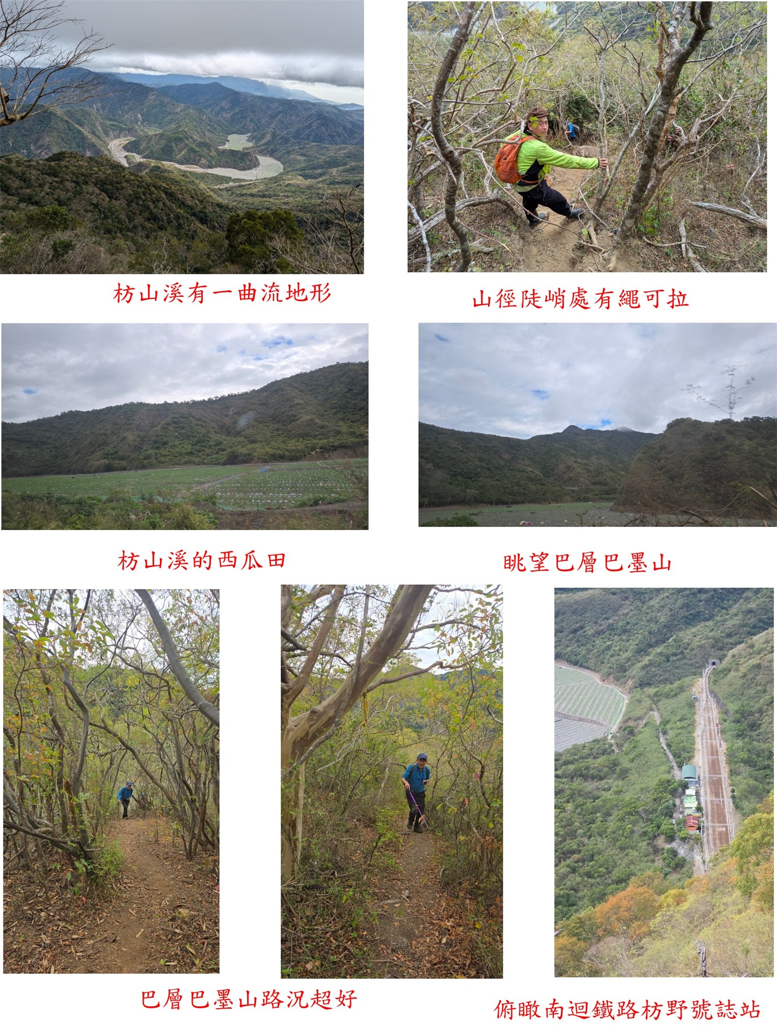 10:15出發,取左入路況佳的山徑,沿途為稀疏的銀合歡林,此山沿途很曬終於等到涼爽的季節來完成;山徑一路陡上,沿途俯瞰枋山溪與南迴鐵路枋野號誌站等。