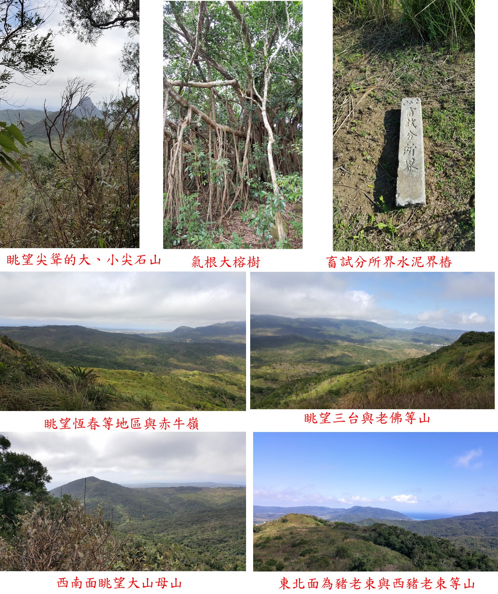 4、門馬羅山東北峰:位於屏東縣恆春鎮,高252公尺,日據時期恆春種畜場編號種五基石;座標228056 2431949。