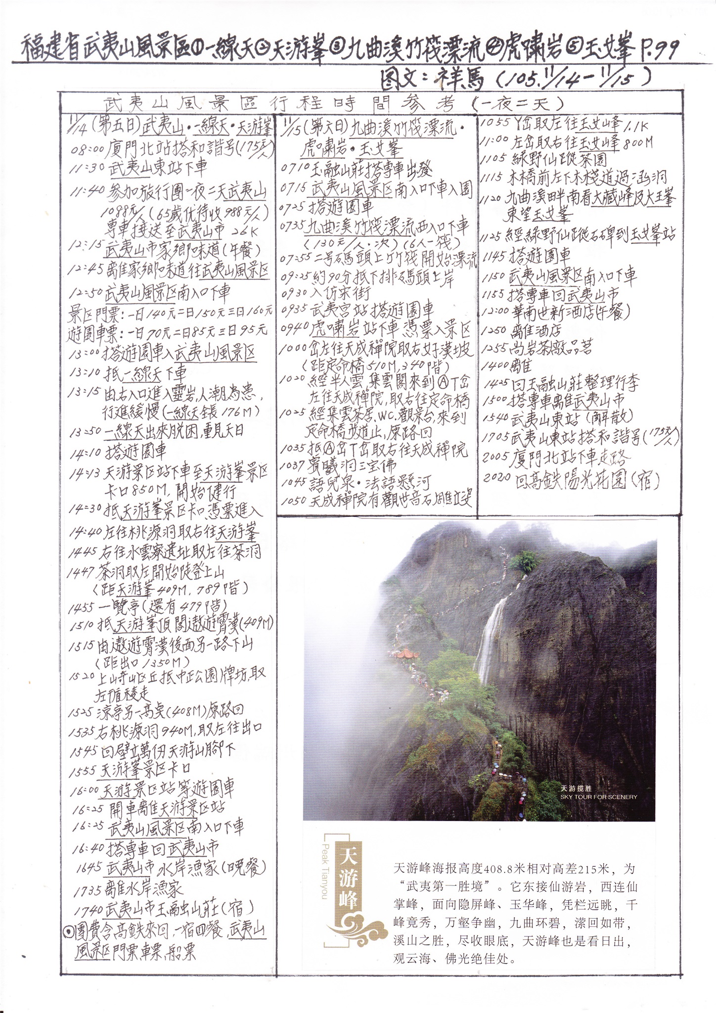 10天游峰素有「碧水丹山」, 「奇秀甲東南」之美譽,1999年12月被列入世界遺產