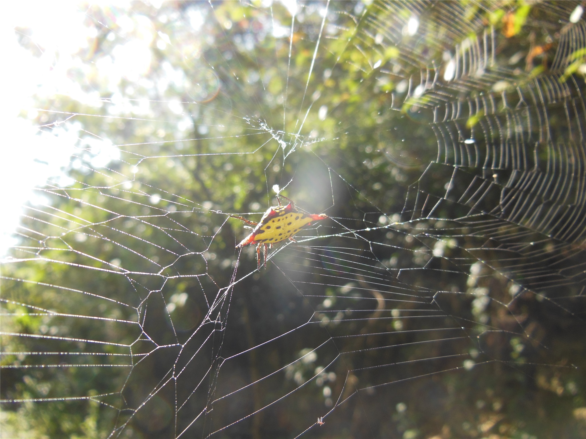 昨天我從來義久保山回來,發現這隻昆虫跟著我回家,起初也不知道是何物,只覺得長相怪異,就放在玻離瓶中觀察,卻發現牠會吐絲把自已掛在半空中,我就懷疑可能是蛛蜘,但又看不到肚子,後來上網查,才知道叫"梭德式棘蛛",詳細資料可自行上網查看。