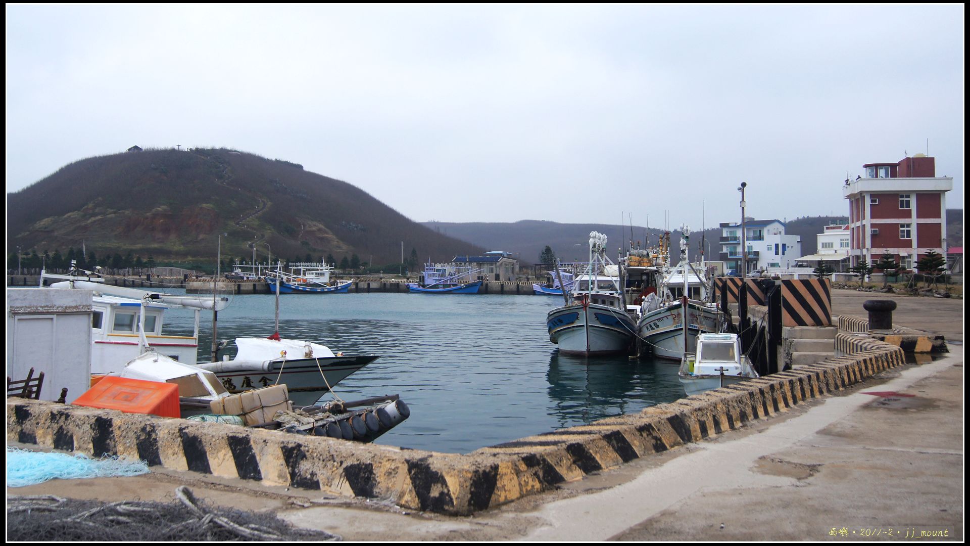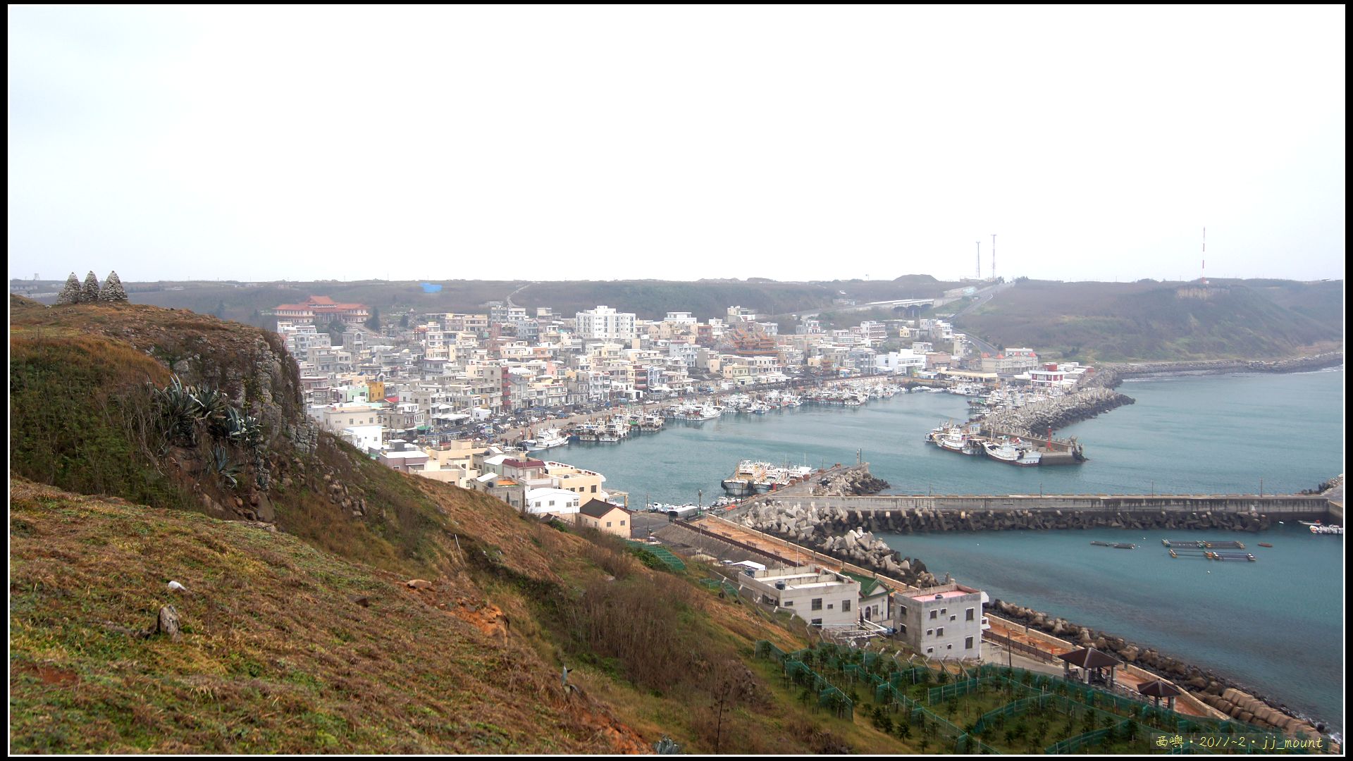 圖左由港邊上到山丘頂的曲折是五孔頂步道, 隔天 (1/1) 清晨會再來給它走走.