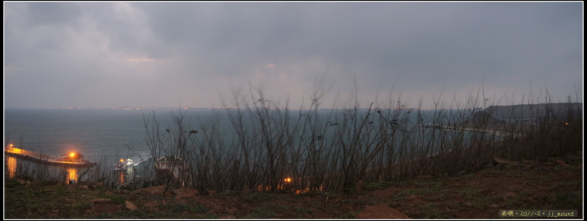 ◎ 元旦清晨, 5 分鐘登頂的五孔頂 (高約 40M), 可東眺馬公市的燈火. (雲多沒等到日出就走了)