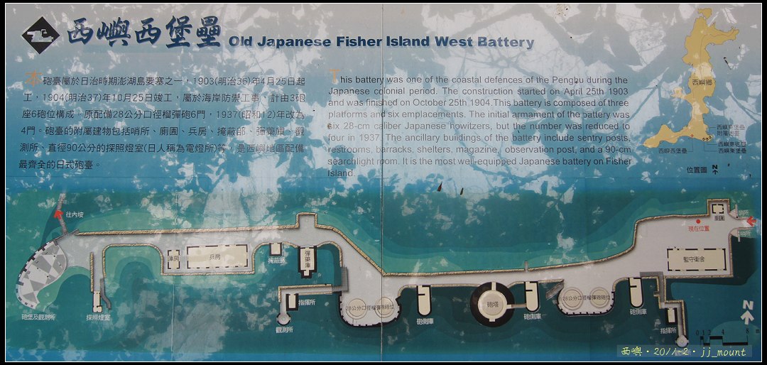 ◎ 意外來到的「西嶼西堡壘」的導覽圖. 因為周圍的銀合歡長得很高, 圖中的三處觀測所, 僅剩中間的觀測所還有眺望.