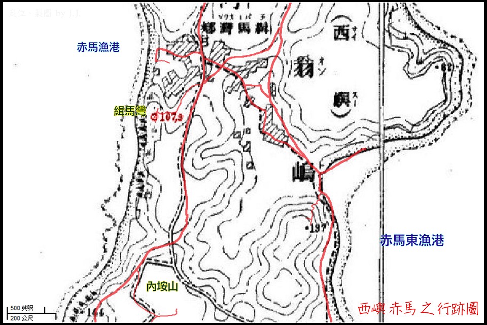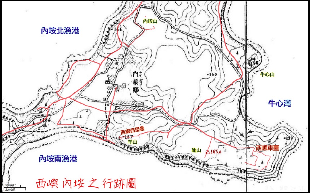 ◎ 承前, 仍是西嶼內垵之行跡, 但改以百多年前出版的《台灣堡圖》為底圖.