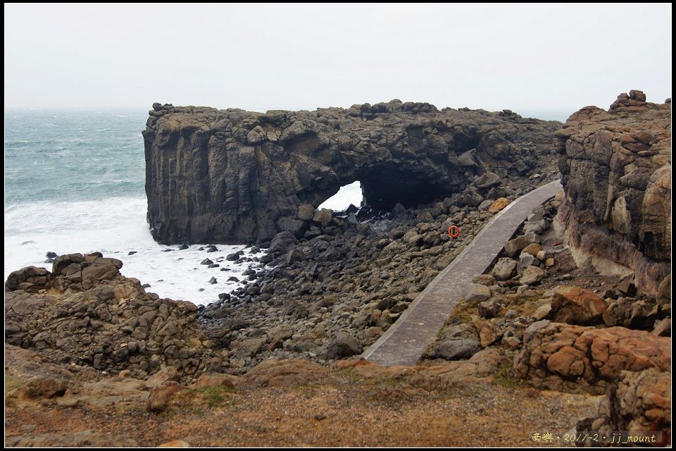 ◎ 來到小門嶼的名景 - 鯨魚洞. 因風浪襲人, 就沒走下去, 是從右上方的草地繞過去續行接回步道.