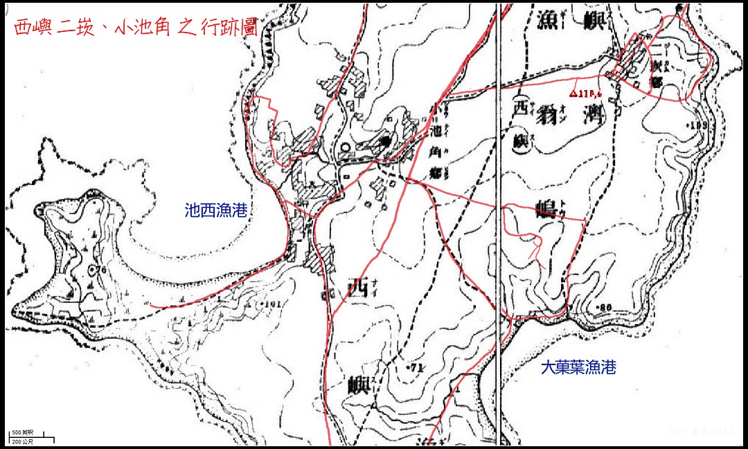◎ 西嶼大菓葉、二崁之行跡地圖 (與小池角的池東、池西畫在一起),