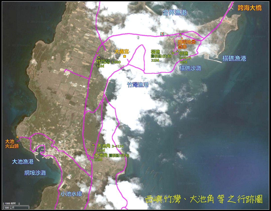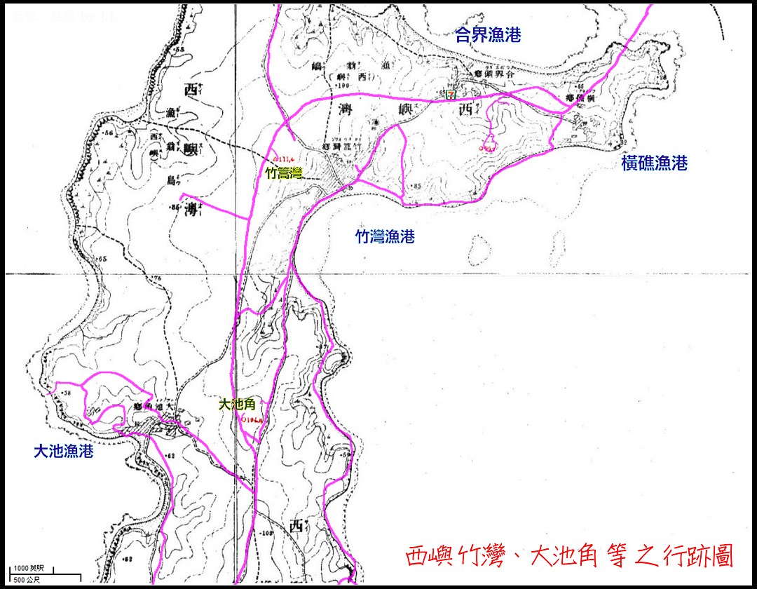 ◎ 西嶼大池角、橫礁、竹篙灣等之行跡地圖,