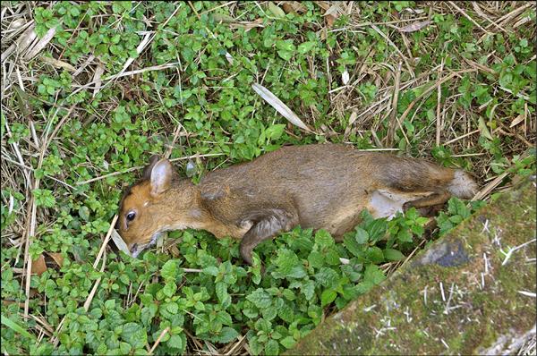 環境與動物保護志工林子淩表示,前天下午三點,本來在陽明山進行導覽,竟有遊客衝上來:「快點,有野狗在咬東西!好像是山羌!」林聞訊急忙衝下山,在大屯山車道快接近二子坪遊客中心附近,發現躺在水溝已斷氣的野生山羌:「但山羌的身體還很溫熱,經詢問陽明山國家公園管理處,才得知這裡過去二十年,都沒人親眼看過野生山羌現蹤!」