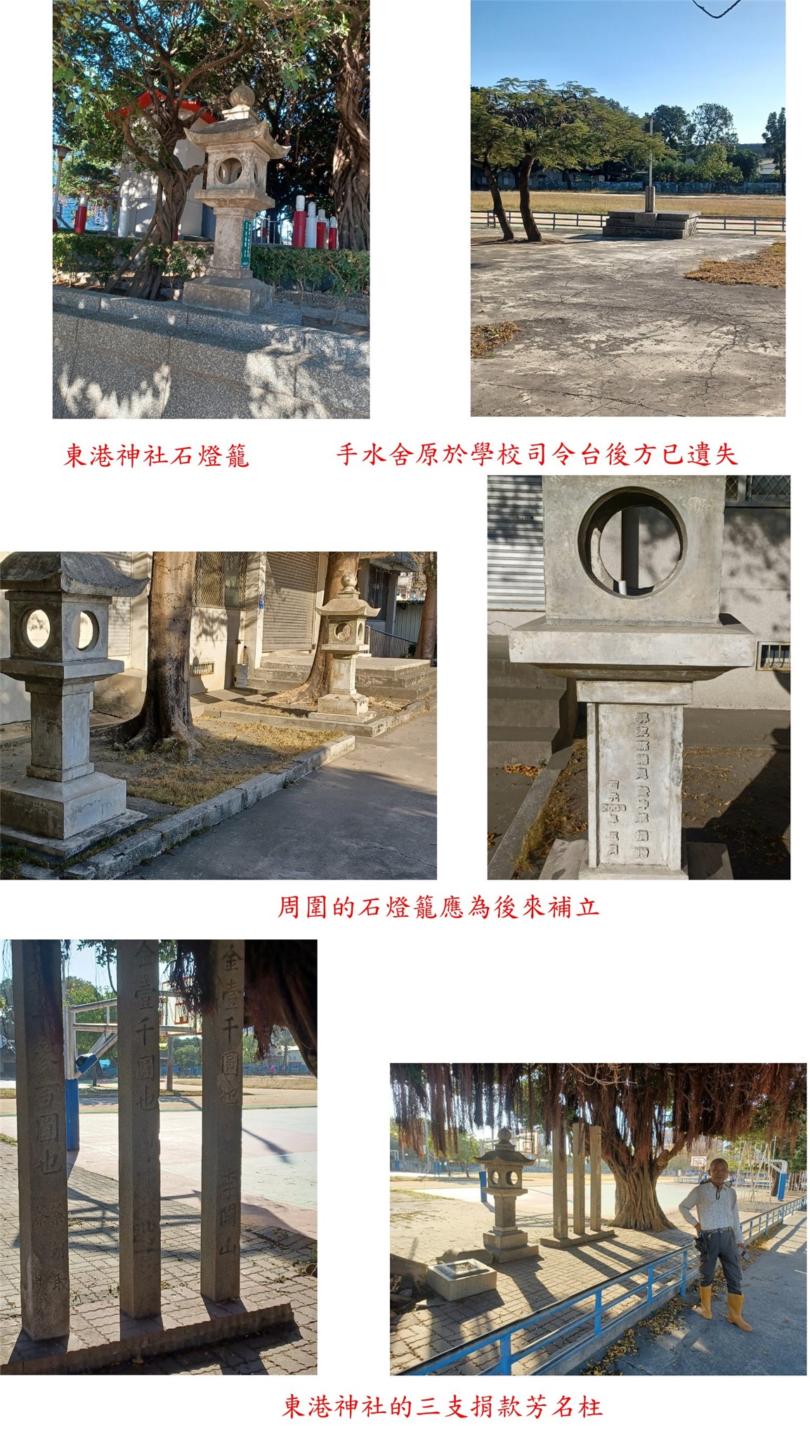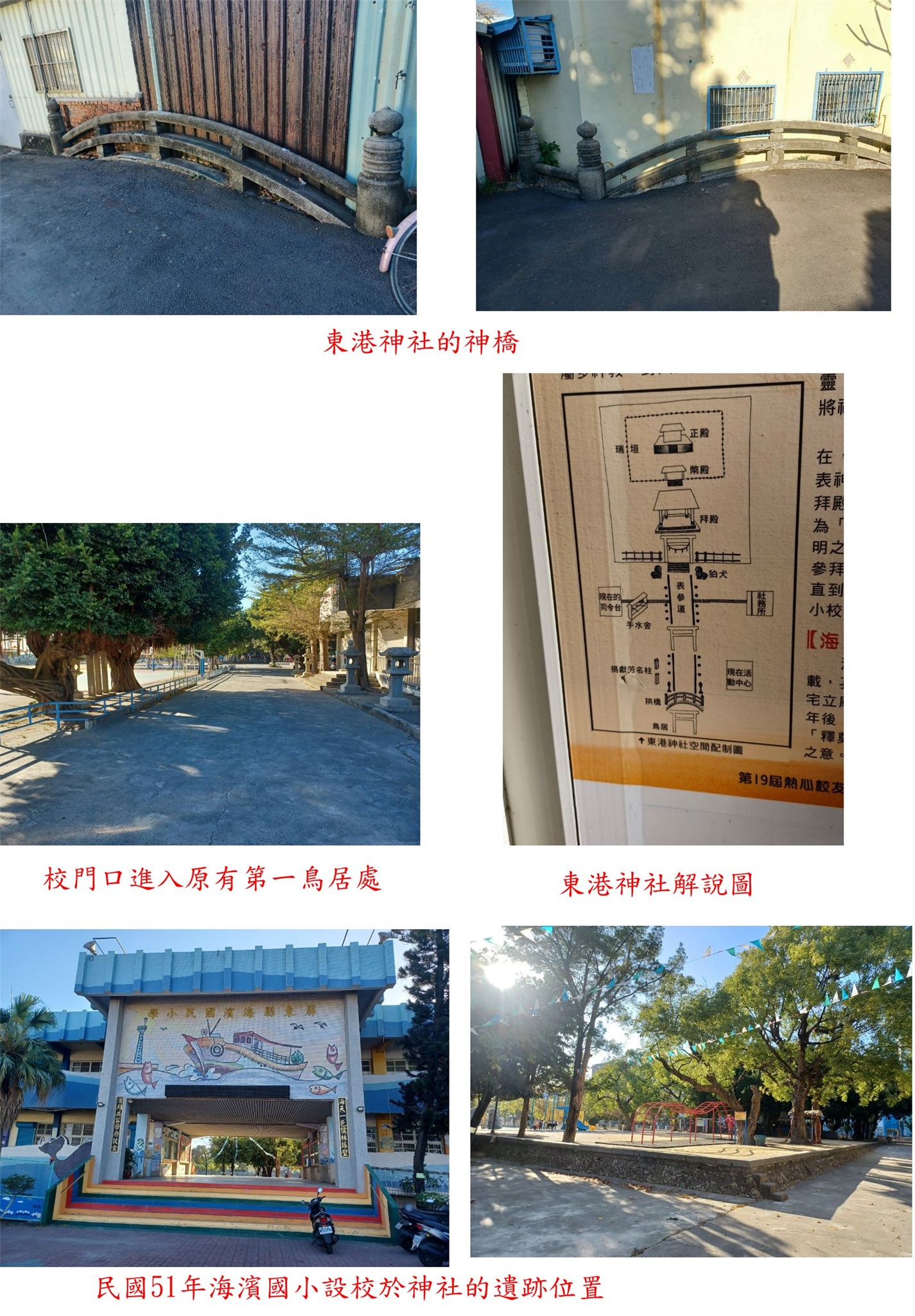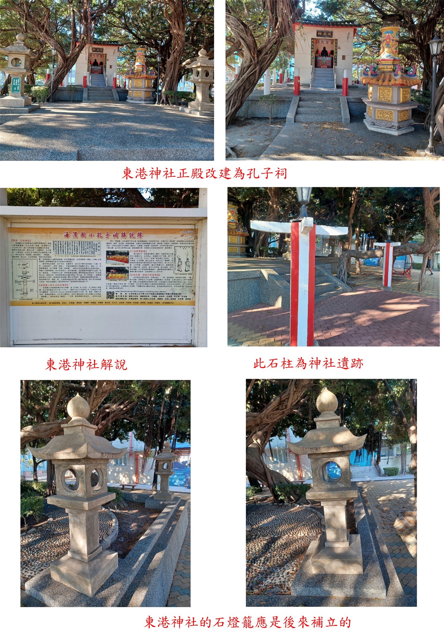 ◎東港神社-東港海濱國小-神橋、三支捐款芳名柱、石燈籠與正殿(改建為孔子祠)