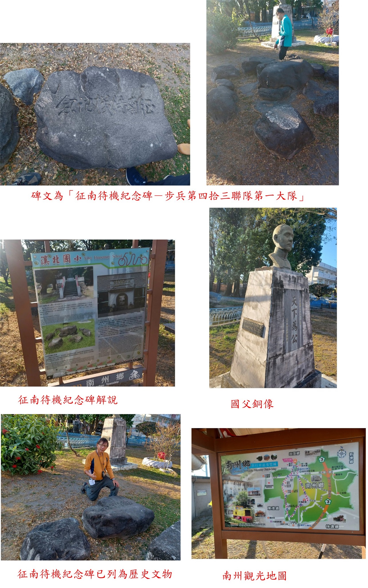 另此校於二戰末期這邊曾被作為日軍派往南洋軍隊的臨時駐紮所,並徵調臺灣子弟準備赴南洋作戰這種情形推論,溪北國小留存有一塊石碑,碑文為「征南待機紀念碑-步兵第四拾三聯隊第一大隊」,另七塊原石排列成環狀,中心有一疑似碑石基座之構造物,此碑碣亦於2009年登錄為屏東縣的歷史建築。