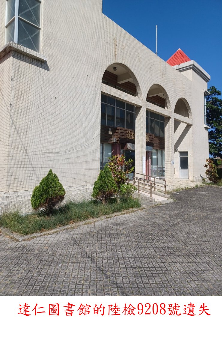 達仁圖書館的陸檢9208號水準點原於達圖館左側的停車棚,基石倒地被棄置於鐵棚架邊緣;此點係阿德兄前無意中尋獲路過帶武隆來補,此回再來此點卻找不到,詢問達圖館人員亦不知,此點不知被移往何處?