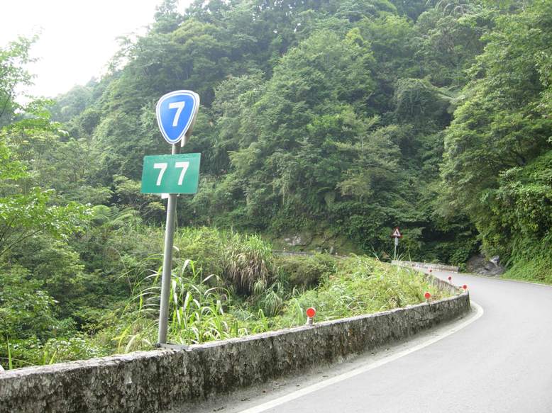 在附近廁所稍微梳洗後,15:18漫步回到停車場。發現黑色雲氣自三星山方向迅速掩來,趕緊整裝。15:25開車回程時,已經開始滴雨了。在霧氣中高度一路下降,天氣逐漸轉為晴朗而炎熱。途中兒子們說有看到三道長長的瀑布,也許就是三疊瀑布了。16:18右轉過家源橋,16:26左轉台七北橫公路,此叉路口大概是台七86公里多的地方。途中看到台7-77的里程指標,與昨天的出發日期2007.7.7相呼應,頗有意思,聽說是非常幸運的數字。小兒子早就累得呼呼大睡,大兒子可就捨不得睡了,沿途仔細觀察,滿足地一路微笑呢。17:36於巴陵附近煮食「午餐」,順便休息。18:22續行,20:13抵家。看來走北橫是比較花時間,但聽說北宜高今天也是大塞車,這就不知如何比較了。