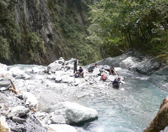 踏石應該都可以通過,過溪之後其實恐懼感仍未消失,我們在溪底休息,北京人把握時