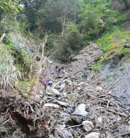 我們大約在"切"附近開始放棄腰繞水管路陡切而上,同樣是路底不是很明顯,只是