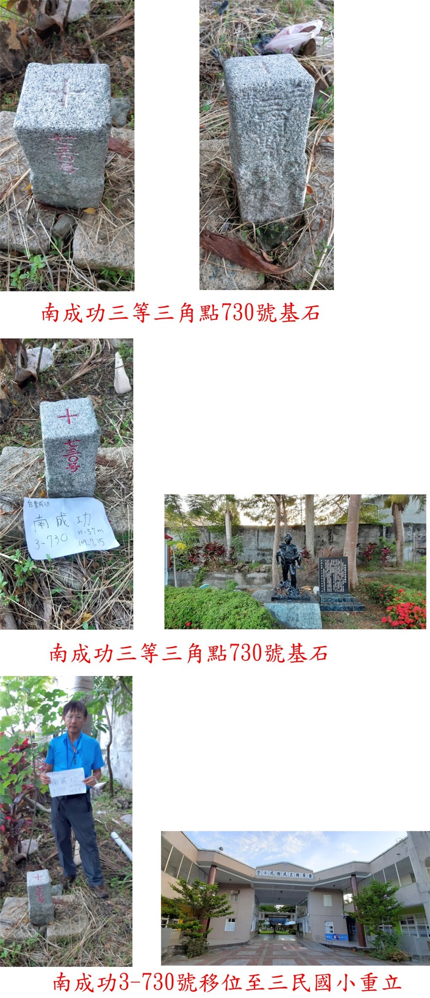 右入三民國小靠右走80餘公尺,即可看到於圍牆旁的南成功3-730號基石,位於林煇開老師殉職紀念碑後方的小花圃上明顯好找,此點已來過多次再度造訪。