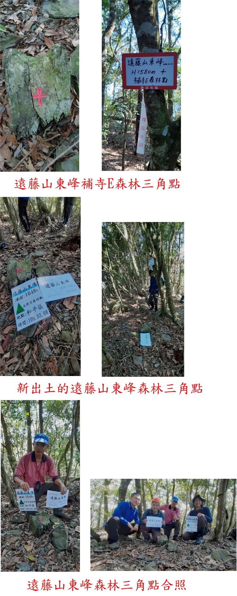 1、遠藤山東峰:位於台中市和平區,標高1648公尺,補寺E自然石森林三角點;座標246186 2688684。