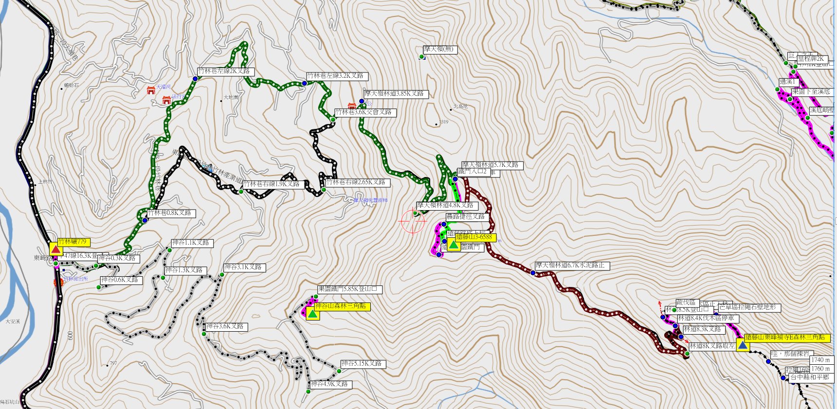 4、士林壩山:苗栗泰安與台中和平交界處,標高714公尺,補寺G自然石森林三角點;座標2428652693100。