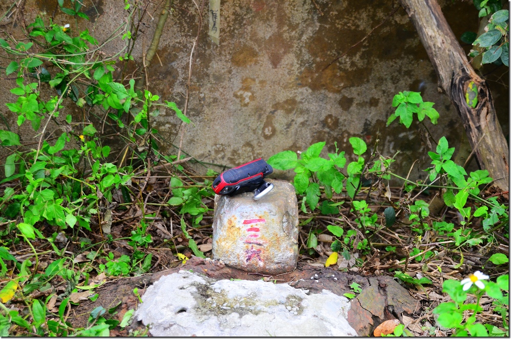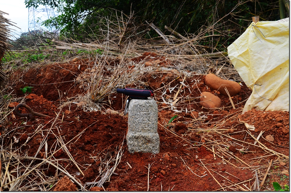 停車處左側有一座田姓家族大墓,由大墓左側走到大墓後面,在大墓左後方(北)的田邊小空地發現斷頭平躺在地的圖根點,此點前途堪慮。