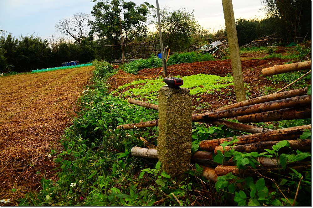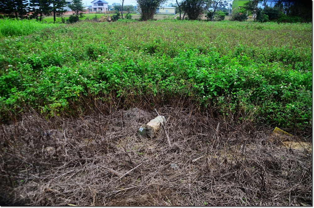 由342號左側進入菜園,在菜園右上角(東北)旱田田埂一欉竹林稍北處找到戲棚跡圖根點立在田埂上,距菜園約25公尺。