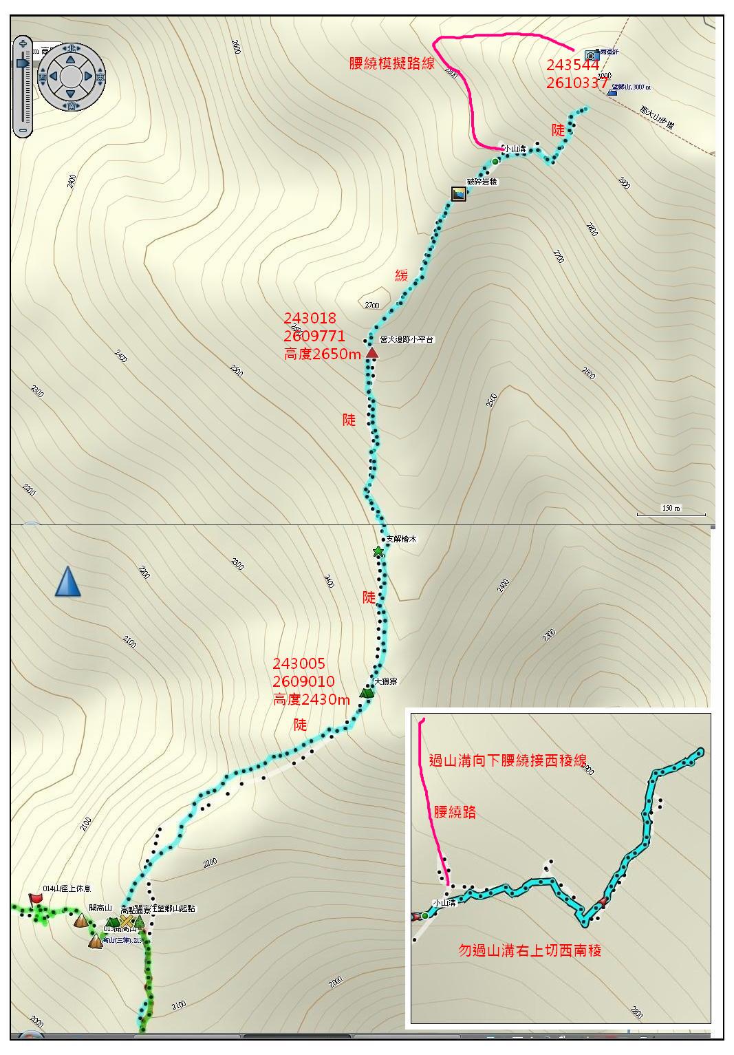 純文字紀錄檔 JPG地圖檔 TWD67二度分帶地圖 開高山西稜登口 開高山南稜登口
