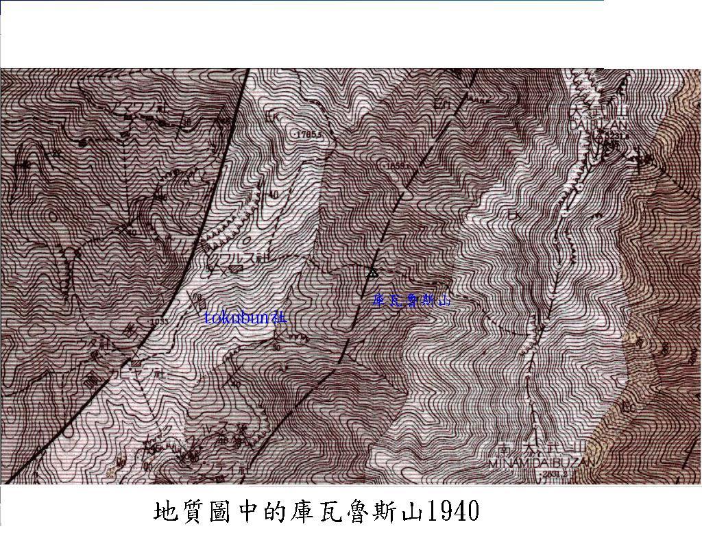 1940年出版的地質圖中的kuwarusu社是西排灣的主要大社之一,另一個是kapiyagan社(佳平社),二者之間則是tokubun社(德文社),不過德文社在霧臺鄉也有一個,以下的網站提到德文咖啡的爭議http://www.aborigines.sinica.edu.tw/thorp/modules.php?name=News&file=print&sid=103,雖然kuwarusu社已日譯成另一「桑留守山」且舊社東北的最高山頭也被山脈另一邊的舊平和社(hiyouma社)命名為日譯「日湯真」,這個古老的大社只剩下一條「瓦魯斯溪」來代表,因此這座山取名為「庫瓦魯斯山」應該還算適當。