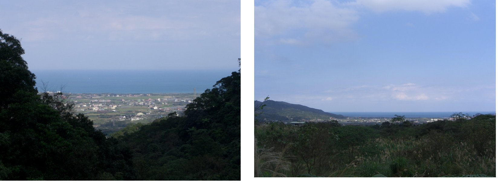 12:15三叉路,右為大孔尾步道,取直南勢湖步道行(指標往陽金公路1.5k),山徑明顯、路條眾多,步道循磺溪支流山腰行;續行轉彎可眺望金山山海景緻。