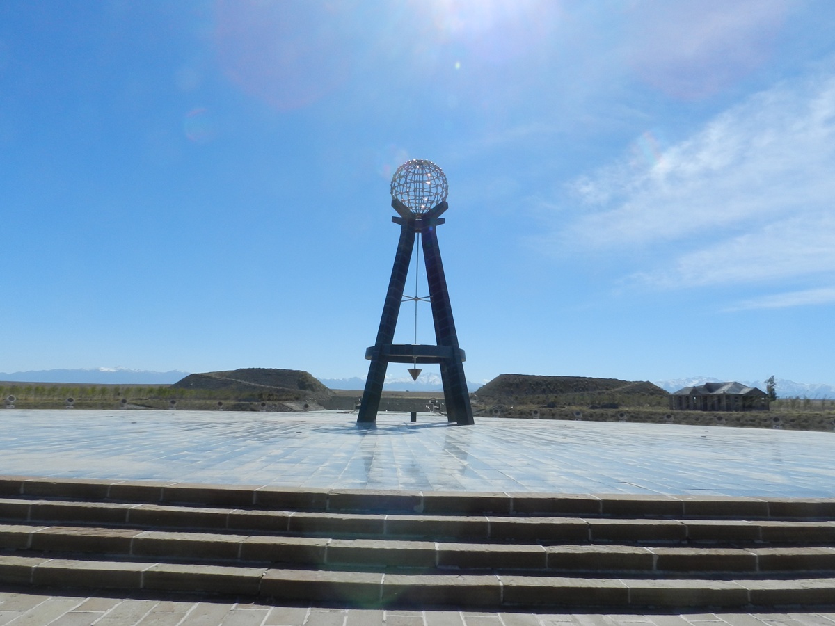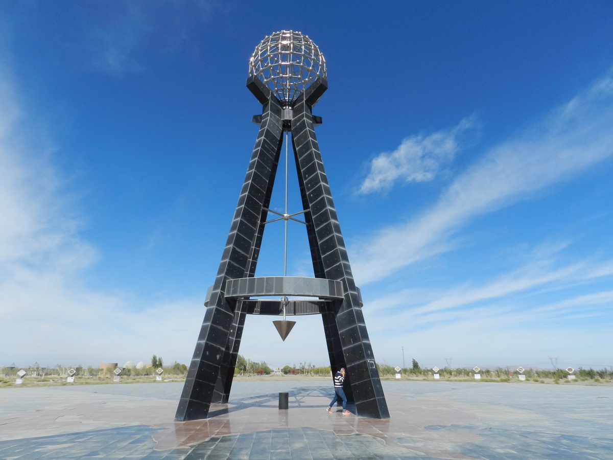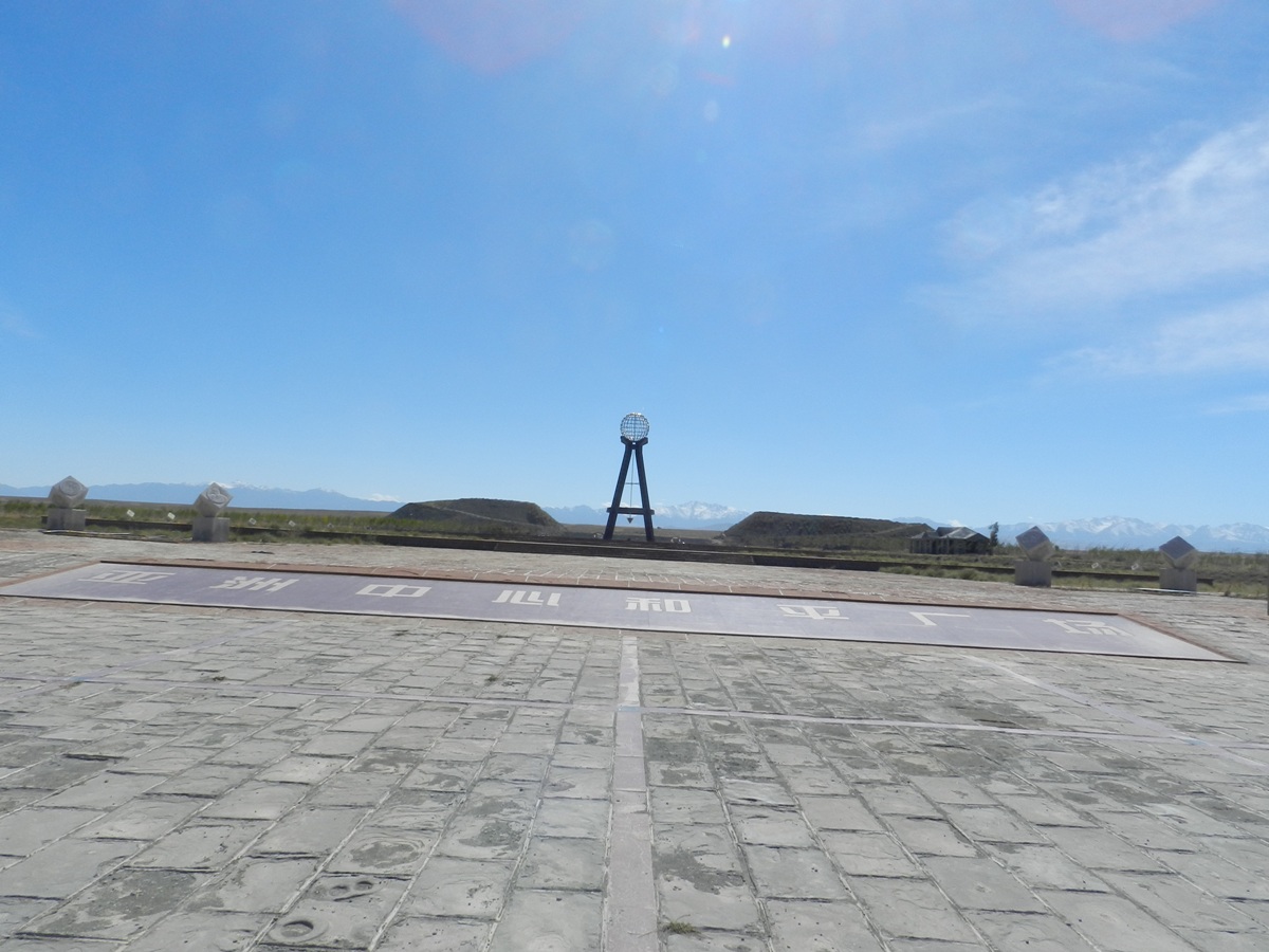 由文化廣場走約600公尺可到和平廣場,廣場中央是亞洲大陸地理中心的标志塔。标志塔的中央是一倒錐形的重力鉛垂,鉛垂下方為一高約60公分,直徑約30公分的矮圓柱,圓柱中央準心有刻劃十字,以供對齊。若爬上矮圓柱,就可以輕易的摸到重力鉛垂。