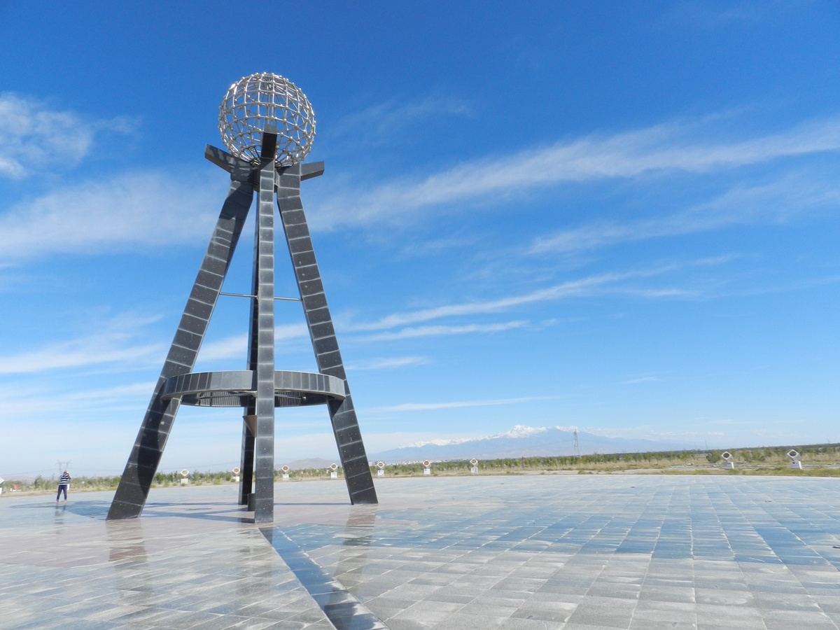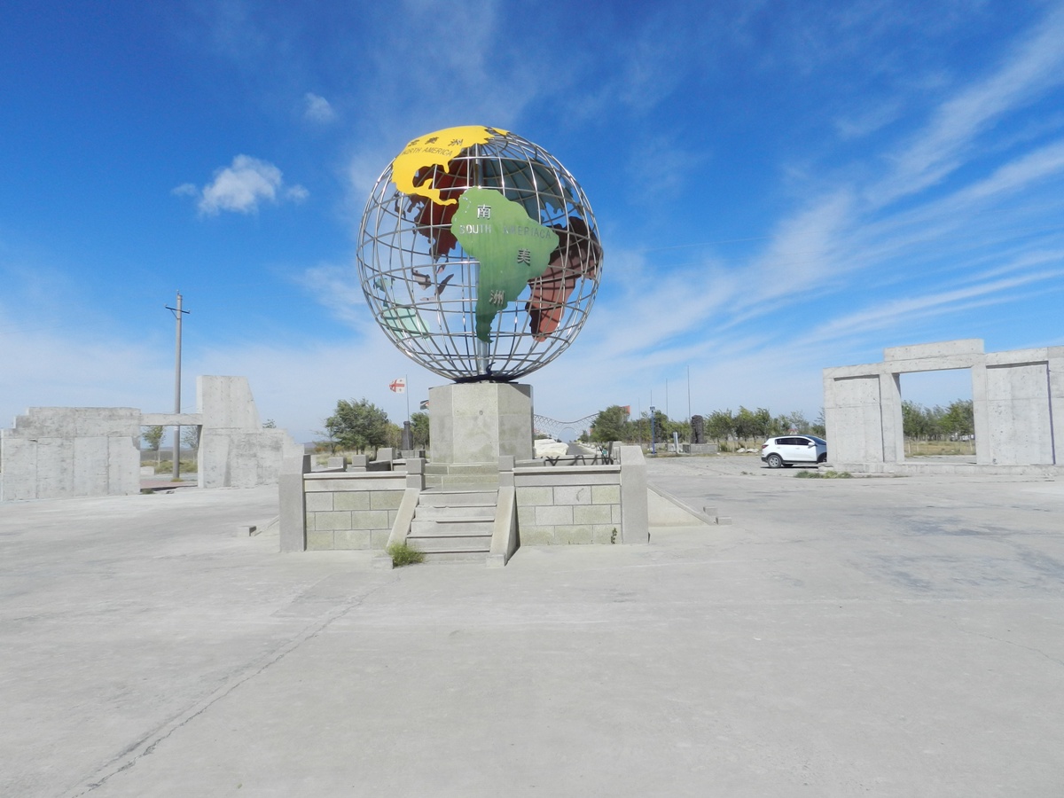 穿過飛鷹大門後沿和平大道走,大道旁有48個國家的雕塑,走約0.5K到文化廣場的停車場停車。此處路中央有一顆圓形的地球建築物,四周有希臘、印度、阿拉伯、中華等四個文明园。