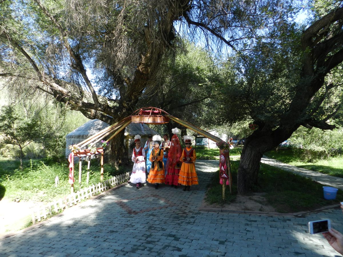 园區內充滿哈萨克族的民俗風光,並有喜慶結婚儀式及歌舞表演,頗值得一訪。唯一美中不足的是半強迫合照及強迫推銷合拍照片﹝每張20元人民幣﹞,另人歡愉的心情大受影響。