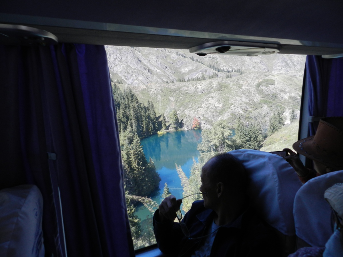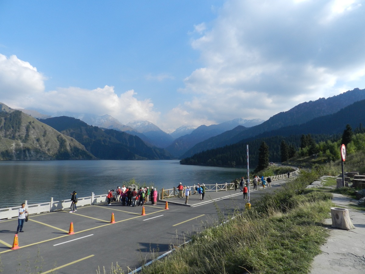 參觀完哈萨克民俗风情园後繼續搭乘園區內巴士往天池,中途會經小天池,