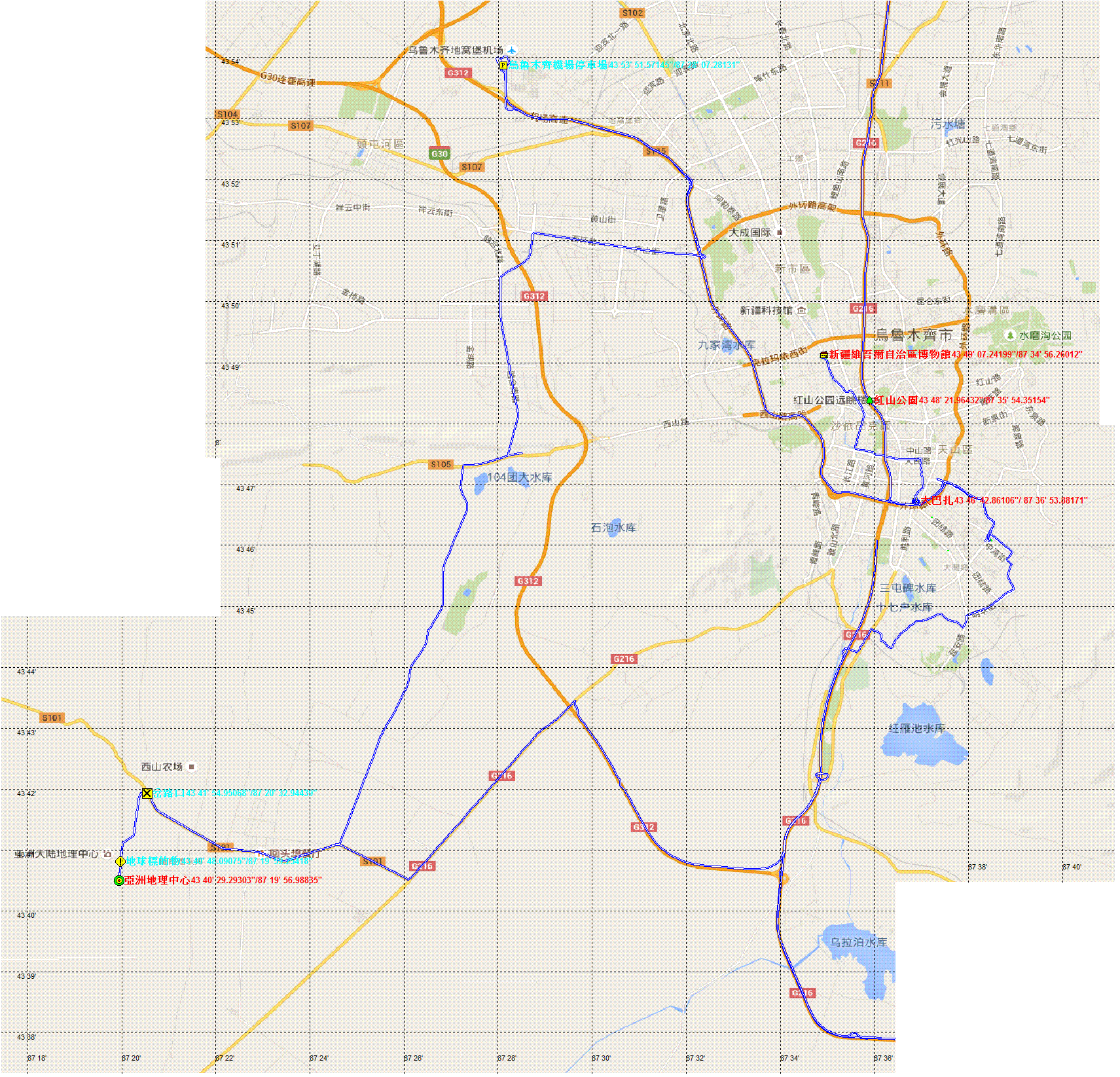 由烏魯木齊火車站﹝海拔約920公尺﹞沿雅山北路往南走,走約2.3K遇G216國道,右轉沿G216國道走約16K遇右岔路S101省道,右轉沿S101省道往西走約8.4K遇左岔路,左轉走約2K到收費站,以30元人民幣購票後繼續前進,走約0.1K到飛鷹廣場的飛鷹大門,