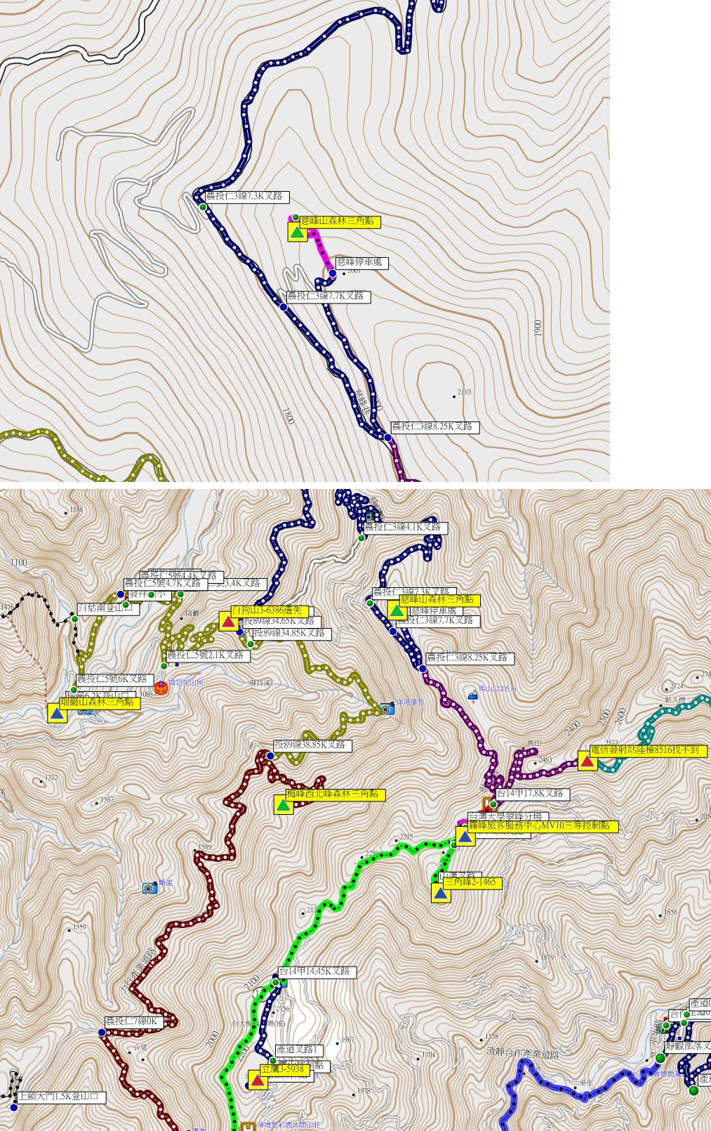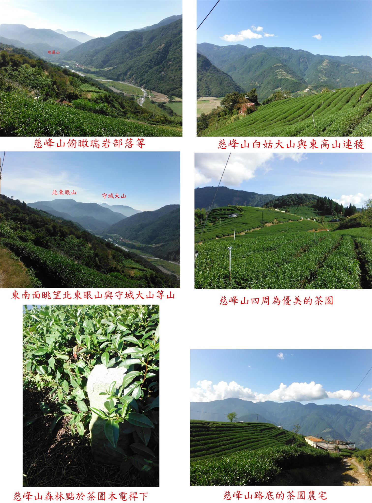 5、慈峰山:又稱馬山西北峰,位於南投縣仁愛鄉,標高1970公尺,森林三角點;座標268172 2668848。