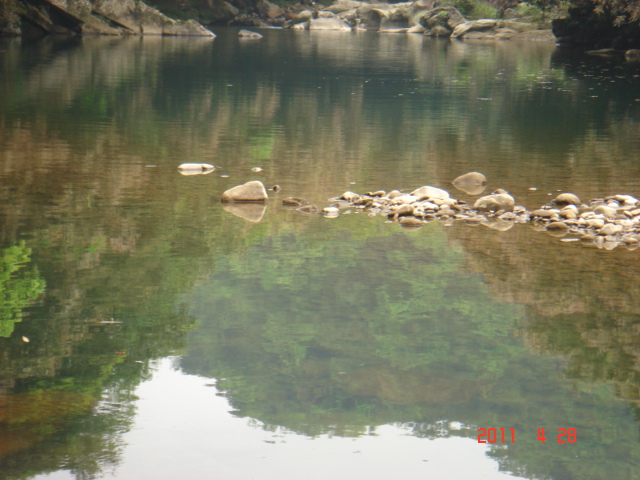 1042:灣潭秀麗迷人的水色山光,使人不得不放慢步伐,停足,驚嘆。一潭清水,銀花般的苦花魚自由自在的游來游去。