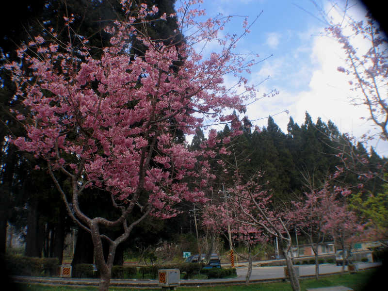 過平交道後即所謂的二萬平,粉紅色的吉野櫻正盛開,