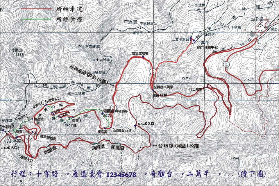 →奇觀台(11:55-12:10,2022M)→二萬平(13:14-13:40,2000M)